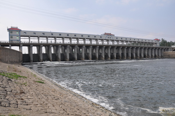 八里河閘  潁上縣八里河閘位于沙潁河潁右右堤,新建八里河閘為6孔涵洞,三孔一聯。控制流域面積483km2,5年一遇設計除澇流量264m3/s,垂直水流方向總